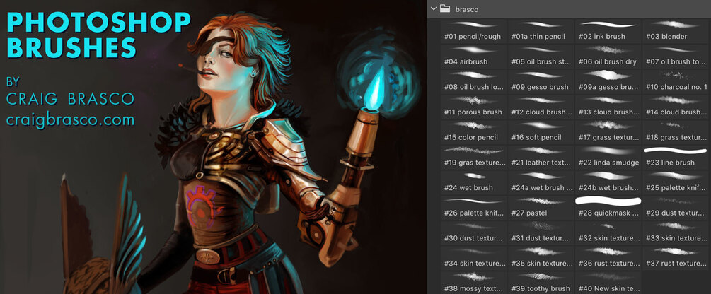Hello! This is a collection of custom brushes I've designed and used in Photoshop for years. You are purchasing an ABR file that contains 40 different brushes. You can get a preview of those in the image above. Thank you for considering this purchase and please contact me at cbrasco@gmail.com if you have any questions or concerns.